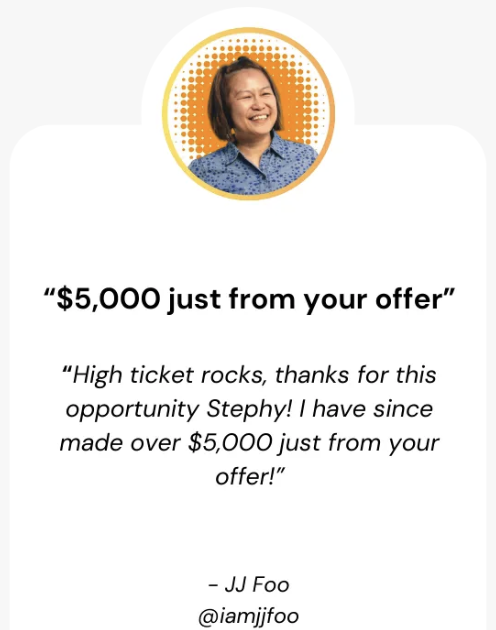 Optional but highly recommended as a beginner. Earn 100% commission reselling this program - Earn up to $388 per sale (with order bumps and upsells) multiple times a day. Takes 15 mins to set up your system, truly - you can time it.